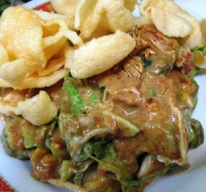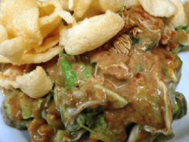 Gado-gado aneka sayuran dan bumbu kacang yg gurih di campur sama nasi atau lontong.
