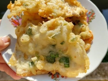 Batagor dengan tahu ikan dan aci yg berpadu khas di lumuri dengan kuah kacang yang gurih dan pedas manis..
